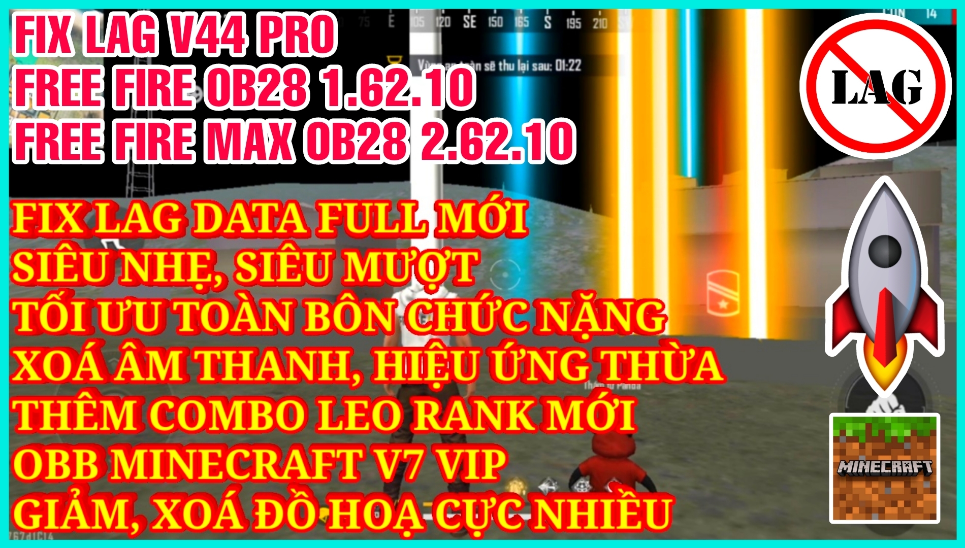 DOWNLOAD HƯỚNG DẪN FIX LAG FREE FIRE OB28 1.62.10 V44 PRO SIÊU MƯỢT - TỐI ƯU THÊM DUNG LƯỢNG, CHỨC NĂNG CỦA DATA VÀ OBB FIX LAG